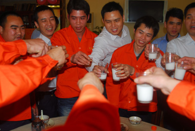 “謝謝大家一年來(lái)的辛勤付出!干杯!”